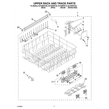Parts for Whirlpool GU1500XTLQ2: 09 - Upper Rack And Track Parts
