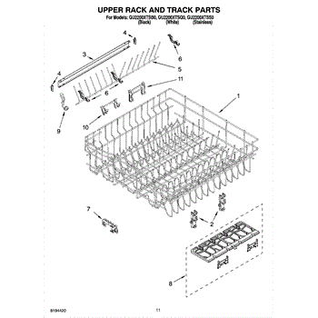 The Upper Dish Rack is an OEM replacement part for Whirlpool dishwashers. Located on the upper level inside the tub, it provides an area for washing smaller dishes, utensils, and glasses.