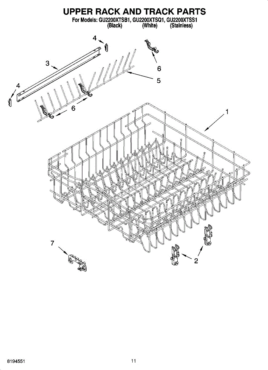 Parts for Whirlpool GU2200XTSS1: 09 - Upper Rack And Track Parts