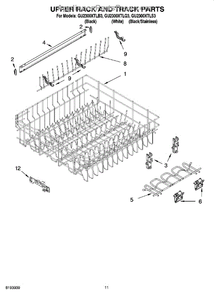 Parts for Whirlpool GU2300XTLB3: 09 - Upper Rack And Track Parts