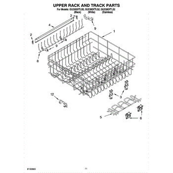 The Upper Dishrack Rail is an OEM replacement part for Whirlpool dishwashers. It guides upper racks in and out for easy access to dishes.