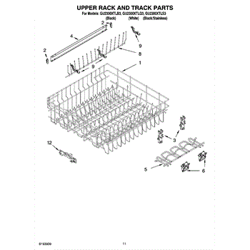 The Upper Dish Rack is an OEM replacement part for Whirlpool dishwashers. Located on the upper level inside the tub, it provides an area for washing smaller dishes, utensils, and glasses.