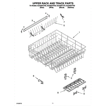 The Upper Dish Rack is an OEM replacement part for Whirlpool dishwashers. Located on the upper level inside the tub, it provides an area for washing smaller dishes, utensils, and glasses.