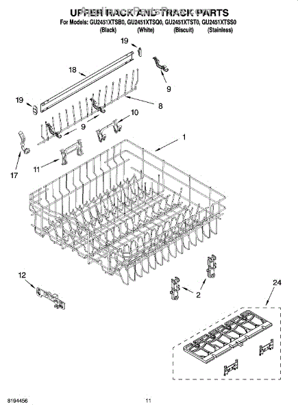 The Upper Dish Rack is an OEM replacement part for Whirlpool dishwashers. Located on the upper level inside the tub, it provides an area for washing smaller dishes, utensils, and glasses.