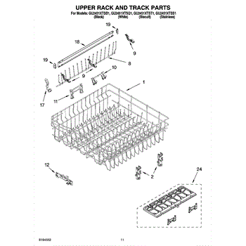 Parts for Whirlpool GU2451XTSQ1: 09 - Upper Rack And Track Parts