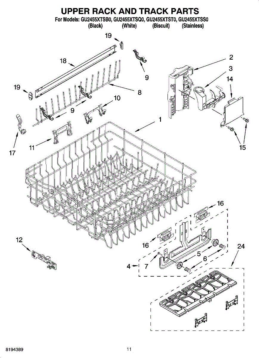 Parts for Whirlpool GU2455XTSS0: 09 - Upper Rack And Track Parts