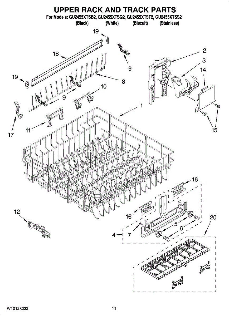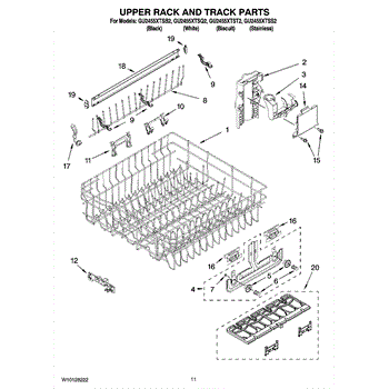 Parts for Whirlpool GU2455XTSS2: 09 - Upper Rack And Track Parts