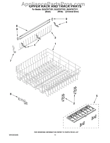 Parts for Whirlpool GU2475XTVQ1: 09 - Upper Rack And Track Parts