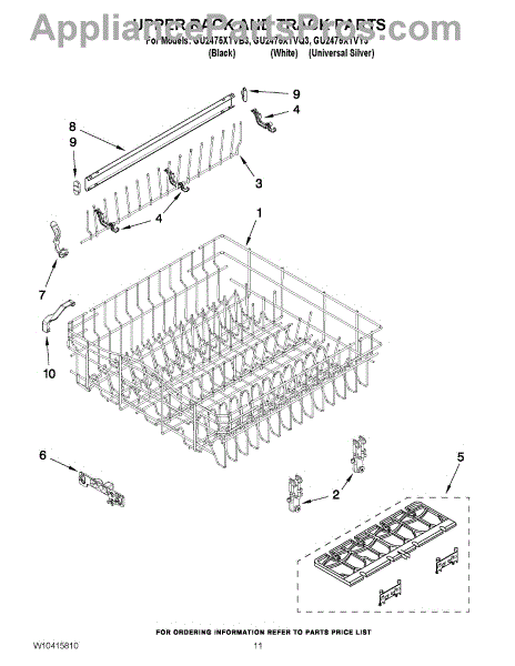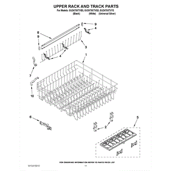 Parts for Whirlpool GU2475XTVQ3: 09 - Upper Rack And Track Parts