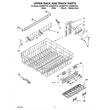 Parts for Whirlpool GU2500XTPQ7: 09 - Upper Rack And Track Parts