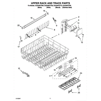 Parts for Whirlpool GU2548XTPT0: 09 - Upper Rack And Track Parts