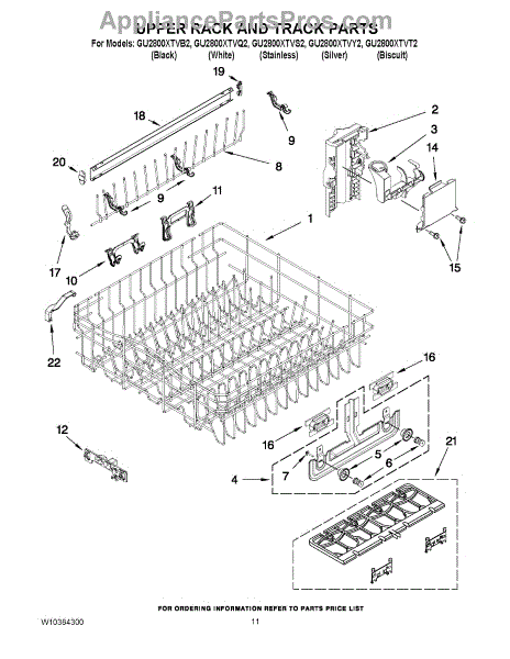 Parts for Whirlpool GU2800XTVQ2: 09 - Upper Rack And Track Parts