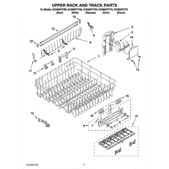 Parts for Whirlpool GU2800XTVS0: 09 - Upper Rack And Track Parts