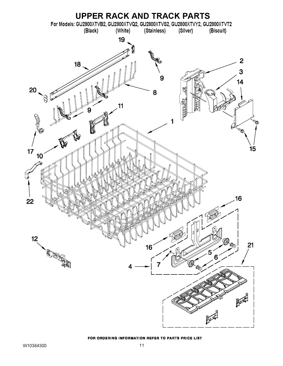 Upper dish rack assembly for dishwashers. Holds glasses, cups, and small items on the top level. Replace if cracked, warped, rusted, or deteriorating.