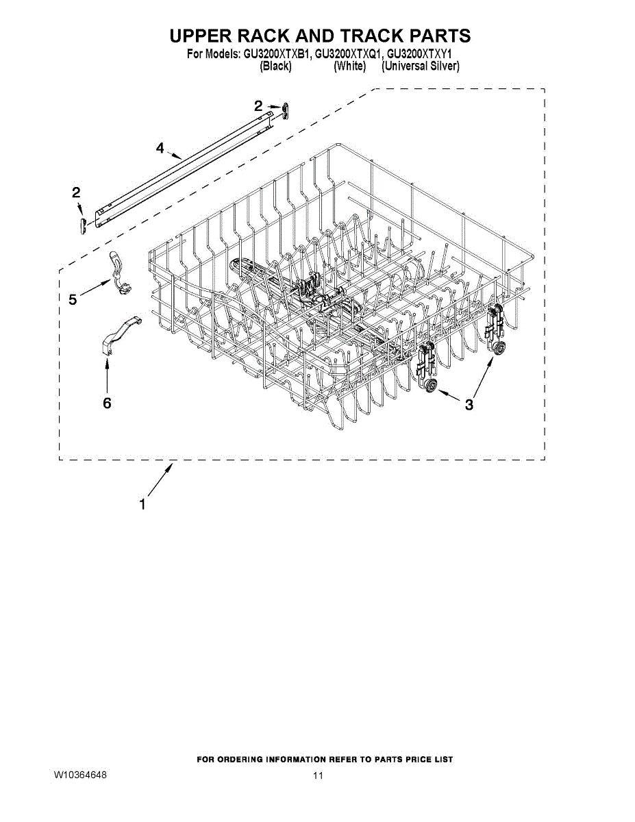 Parts for Whirlpool GU3200XTXB1: 09 - Upper Rack And Track Parts
