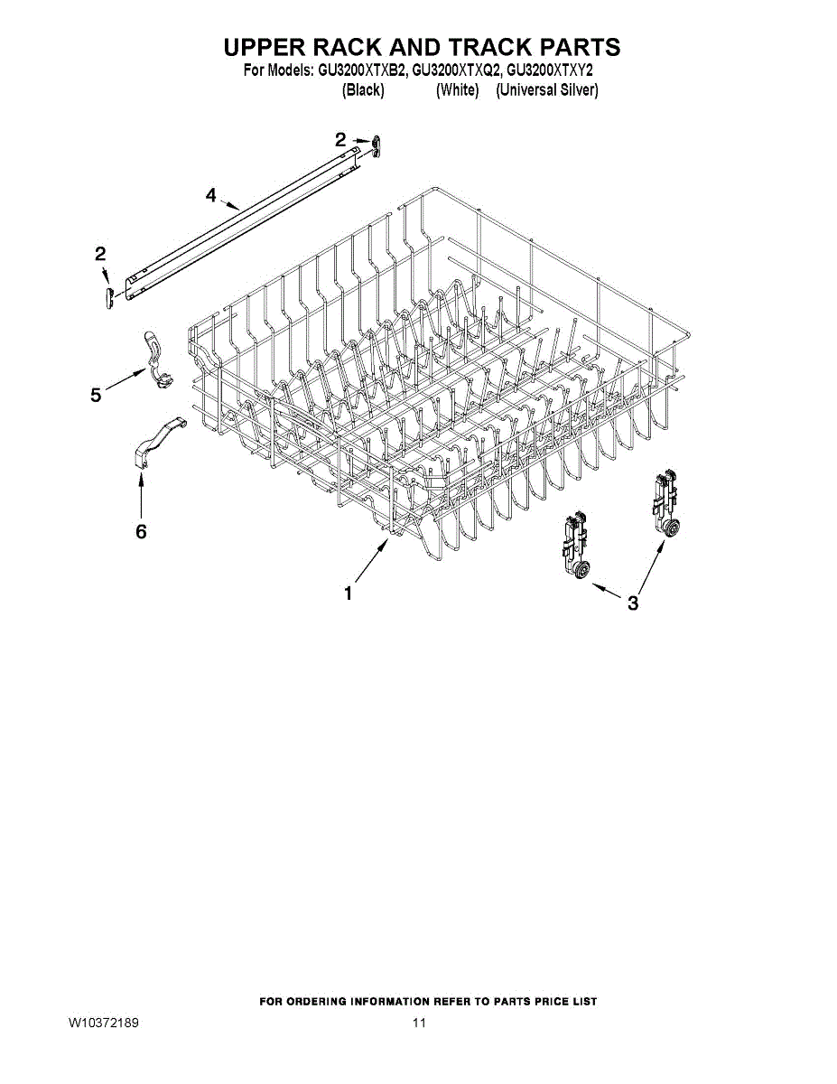 Guides the upper rack smoothly in and out of your dishwasher. Replace if cracked, broken, or wheels no longer roll properly along the track.