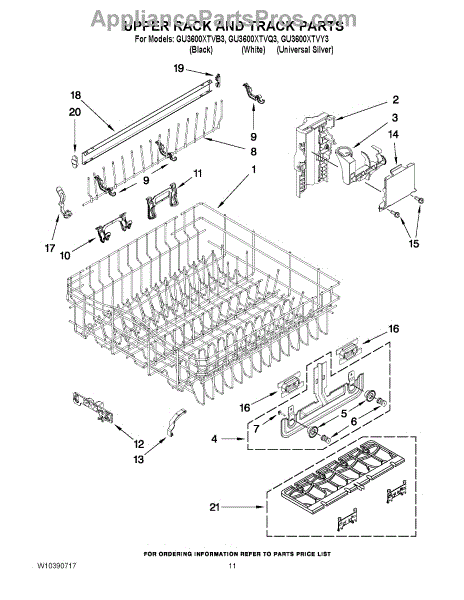 Parts for Whirlpool GU3600XTVB3: 09 - Upper Rack And Track Parts