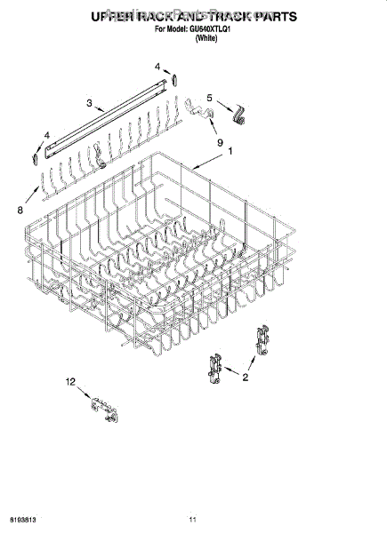 The Upper Dishrack Rail is an OEM replacement part for Whirlpool dishwashers. It guides upper racks in and out for easy access to dishes.
