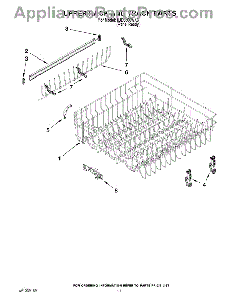 The Upper Dish Rack is an OEM replacement part for Whirlpool dishwashers. Located on the upper level inside the tub, it provides an area for washing smaller dishes, utensils, and glasses.
