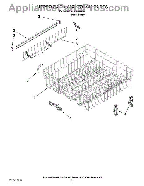 The Upper Dishrack Rail is an OEM replacement part for Whirlpool dishwashers. It guides upper racks in and out for easy access to dishes.