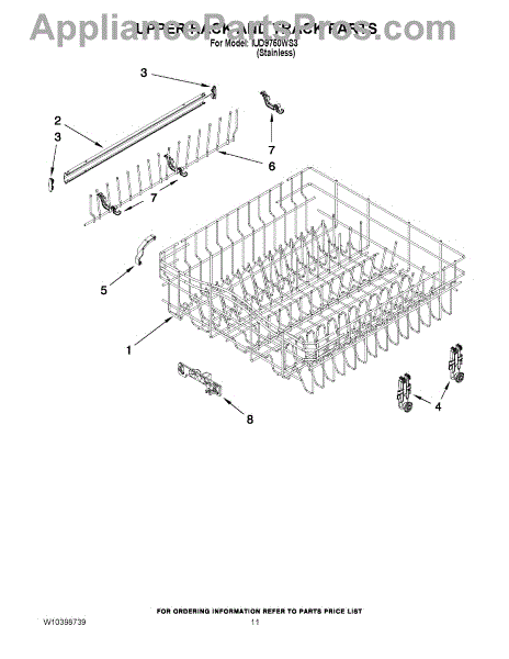 The Upper Dishrack Rail is an OEM replacement part for Whirlpool dishwashers. It guides upper racks in and out for easy access to dishes.