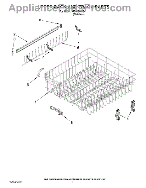 The Upper Dishrack Rail is an OEM replacement part for Whirlpool dishwashers. It guides upper racks in and out for easy access to dishes.