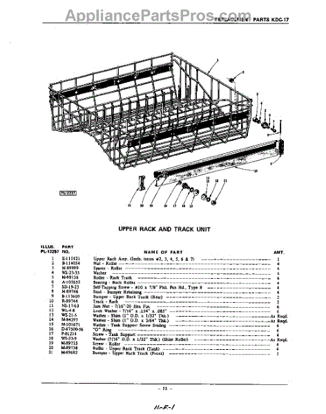Parts for Kitchenaid KDC37: 15 - Upper Rack And Track Parts