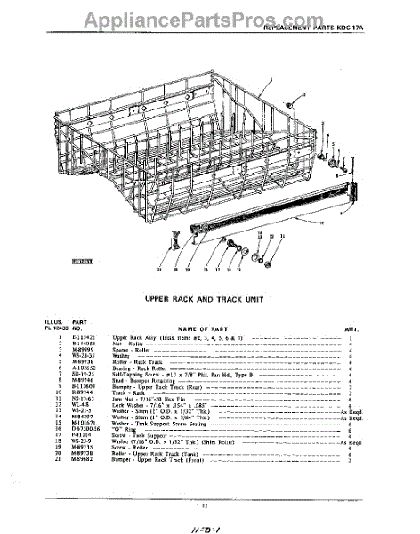 Parts for Kitchenaid KDC57A: 15 - Upper Rack And Track Parts