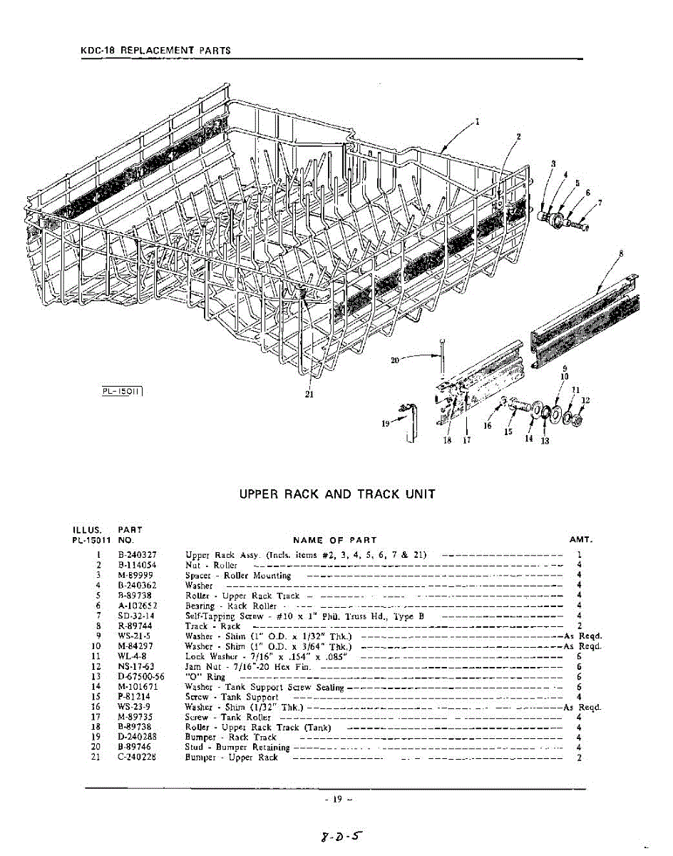Parts for Kitchenaid KDC58: 19 - Upper Rack And Track Parts