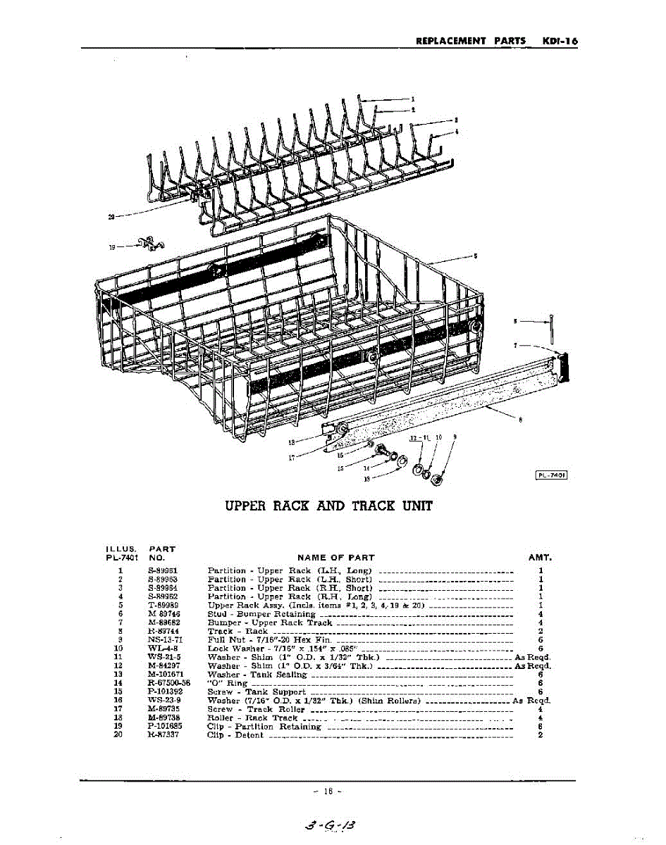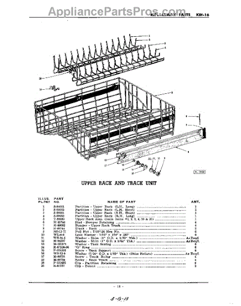 Parts for Kitchenaid KDI16: 18 - Upper Rack And Track Parts