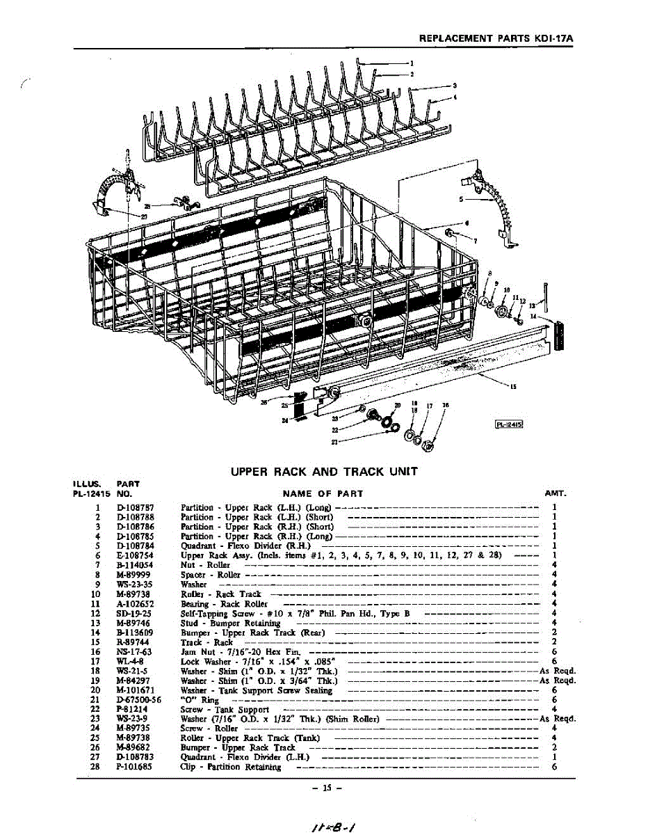 Parts for Kitchenaid KDI57A: 15 - Upper Rack And Track Parts