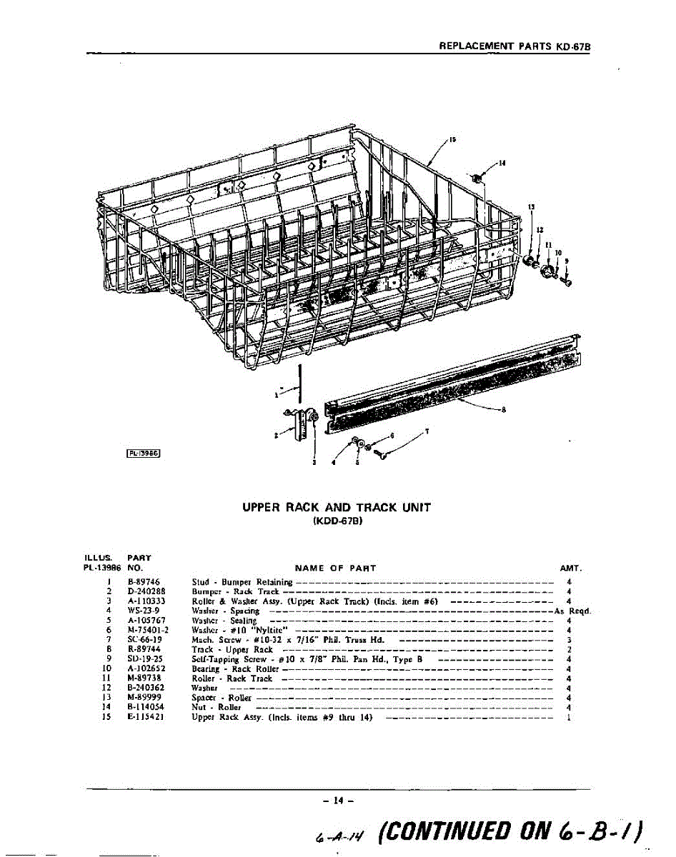 Parts for Kitchenaid KDR67B: 14 - Upper Rack And Track Parts