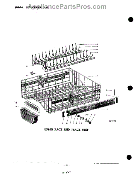 Parts for Kitchenaid KDS16SC: 21 - Upper Rack And Track Parts