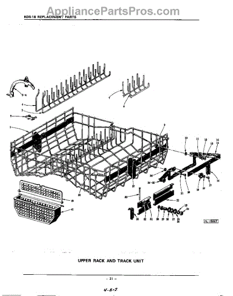 Parts for Kitchenaid KDS18: 21 - Upper Rack And Track Parts