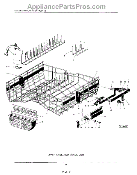 Parts for Kitchenaid KDS20A: 11 - Upper Rack And Track Parts