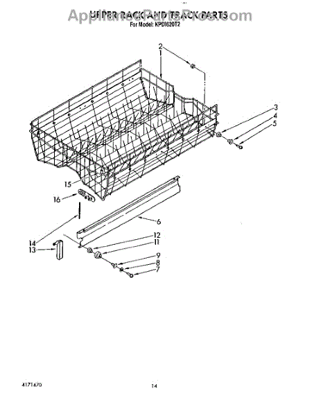 Parts for Kitchenaid KPDI620T2: 11 - Upper Rack And Track Parts