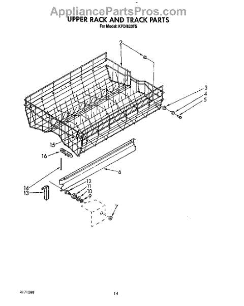 This upper rack roller guides the dishwasher's top rack along its track. Replacing a worn or broken wheel restores smooth sliding and proper alignment so you can load and unload without sticking, derailing, or grinding.