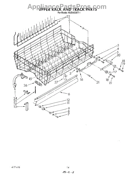 Parts for Kitchenaid KUDA220T1: 11 - Upper Rack And Track Parts