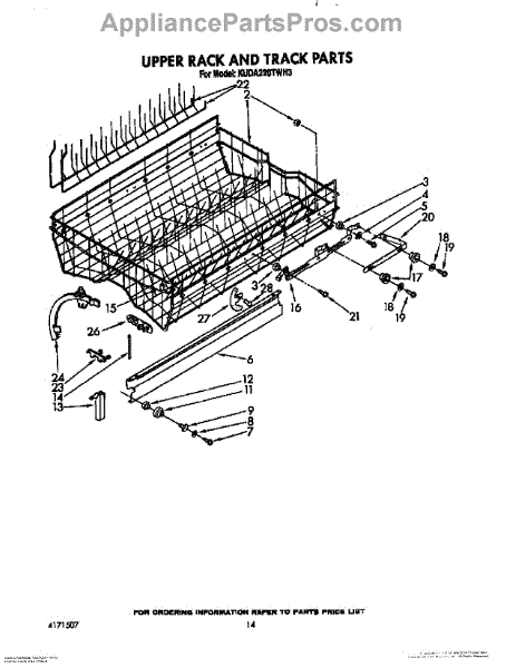 Parts for Kitchenaid KUDA220TWH3: 11 - Upper Rack And Track Parts