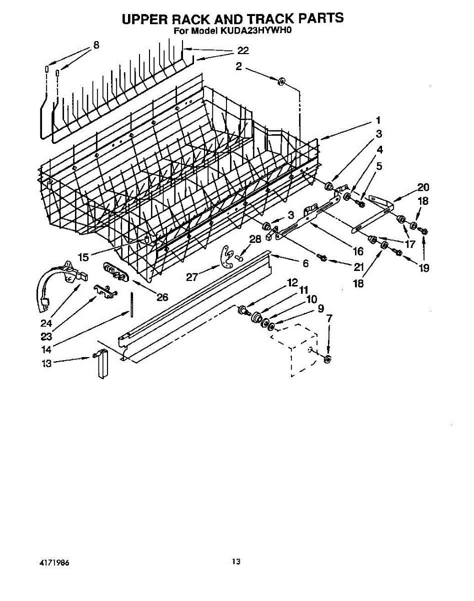 Parts for Kitchenaid KUDA23HYWH0: 10 - Upper Rack And Track Parts