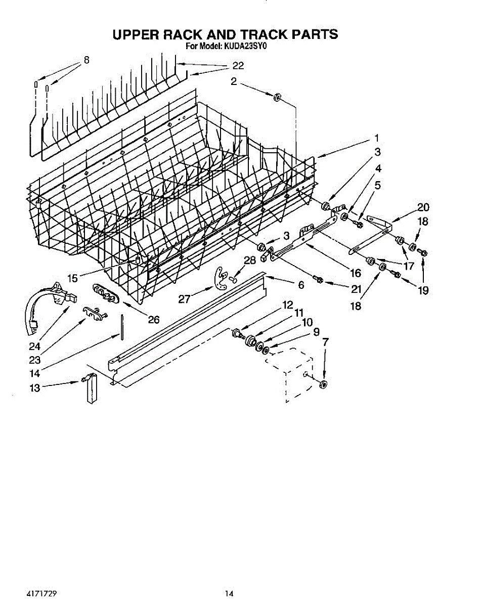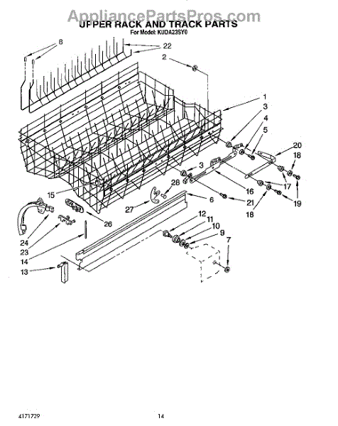 Parts for Kitchenaid KUDA23SY0: 11 - Upper Rack And Track Parts