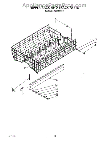 Parts for Kitchenaid KUDB220T0: 11 - Upper Rack And Track Parts