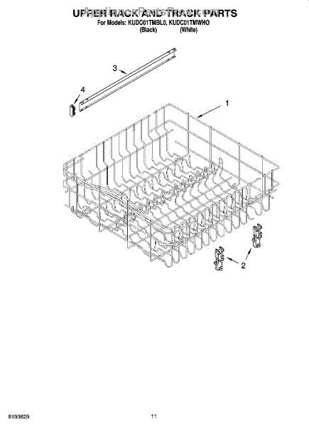 Parts for Kitchenaid KUDC01TMBL0: 09 - Upper Rack And Track Parts