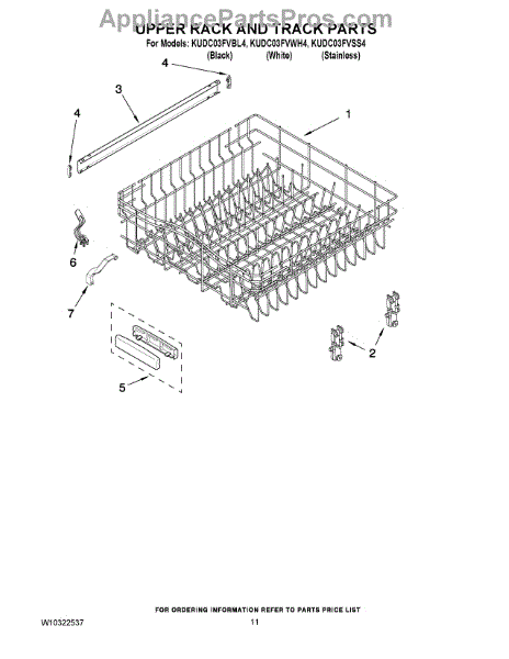 Parts for Kitchenaid KUDC03FVWH4: 09 - Upper Rack And Track Parts