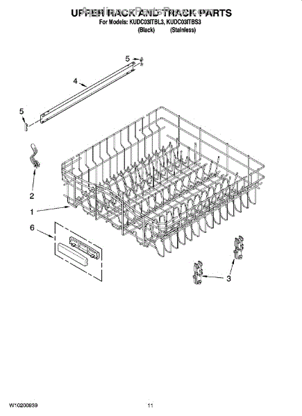 Parts for Kitchenaid KUDC03ITBL3: 09 - Upper Rack And Track Parts