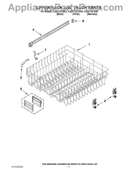 Parts for Kitchenaid KUDC10IXWH0: 09 - Upper Rack And Track Parts