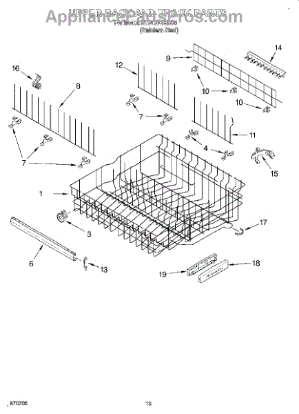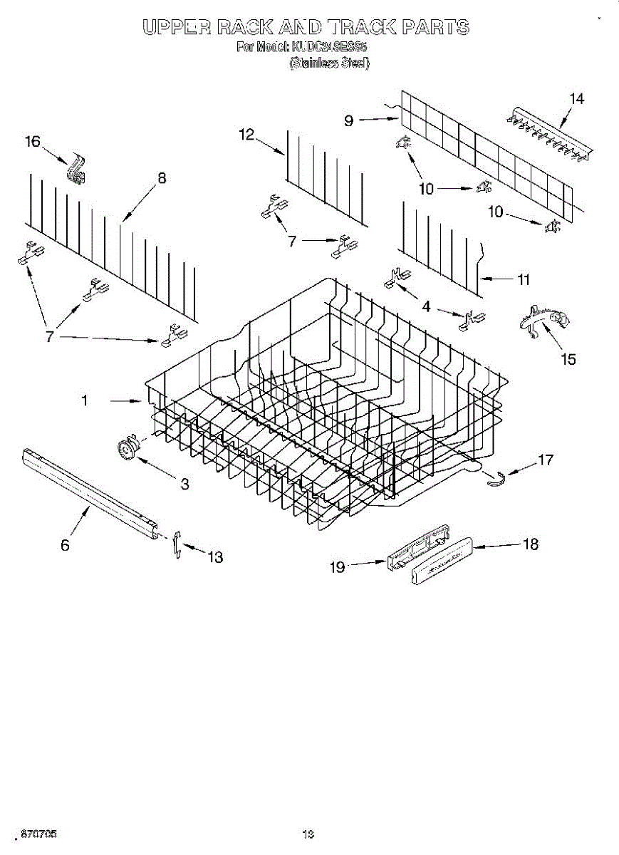 Parts for Kitchenaid KUDC24SESS5: 10 - Upper Rack And Track Parts