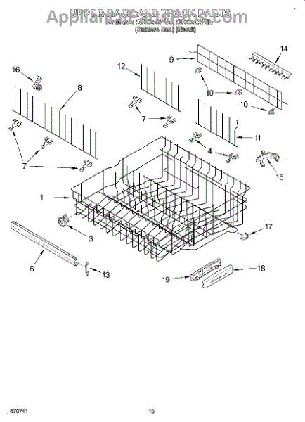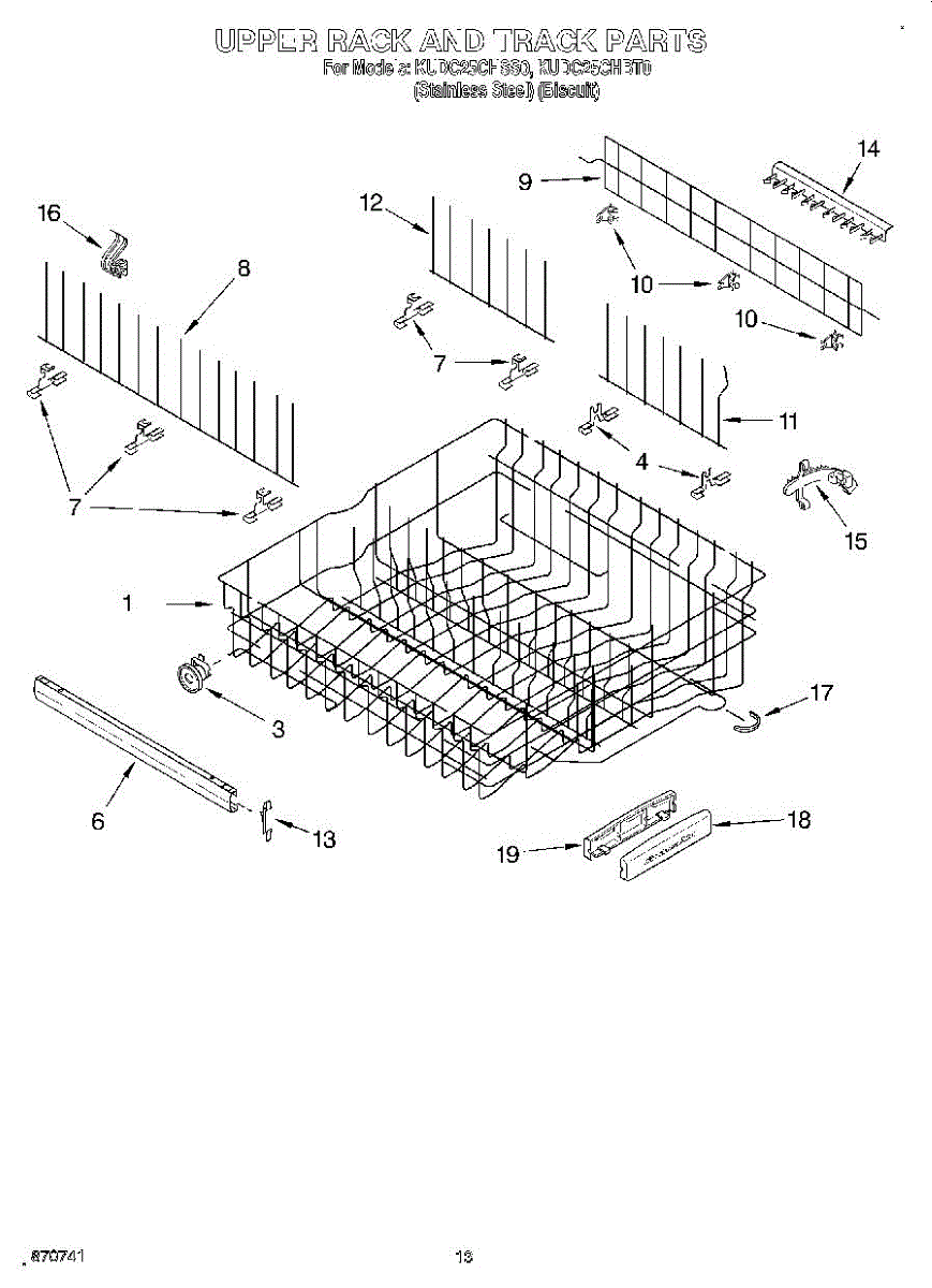 Parts for Kitchenaid KUDC25CHSS0: 10 - Upper Rack And Track Parts