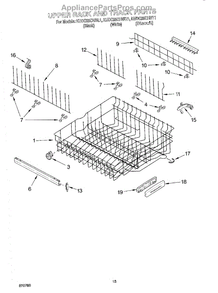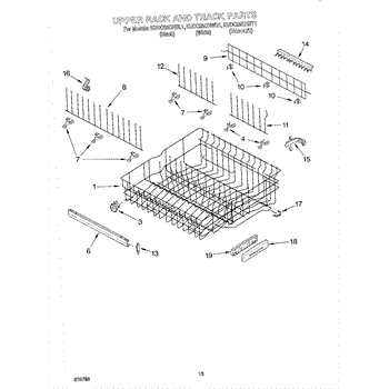 Parts for Kitchenaid KUDC25CHWH1: 10 - Upper Rack And Track Parts