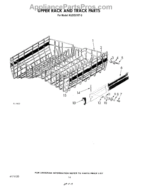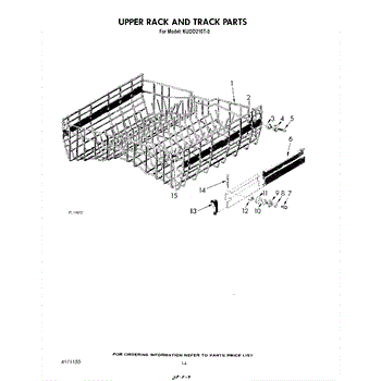 Parts for Kitchenaid KUDD210T0: 11 - Upper Rack And Track Parts